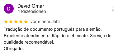 Zusätzlich erstellen wir beglaubigte Übersetzungen, insbesondere für Dokumente zwischen portugiesisch- und